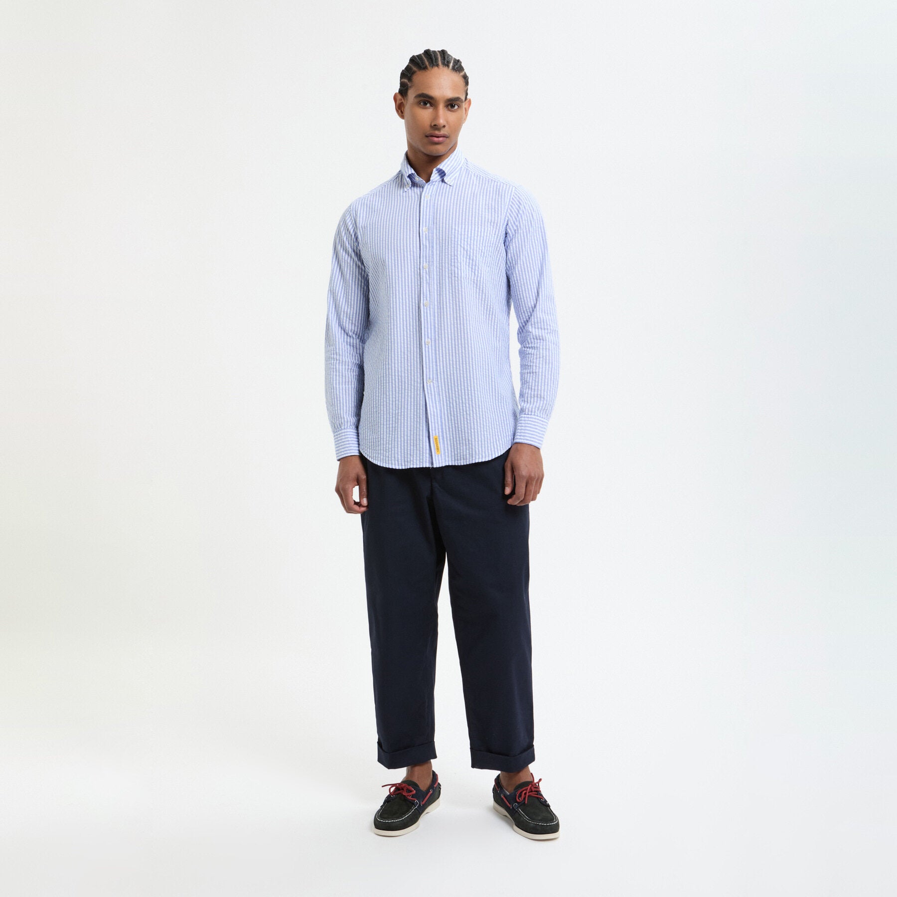 La collezione di camicie B.D. Baggies, dal caratteristico appeal americano, include modelli in diversi tessuti: puro cotone, lino e classico denim. Camicie button-down, a manica corta e lunga, polo, gilet, overshirt, a stampa check, madras e a righe.